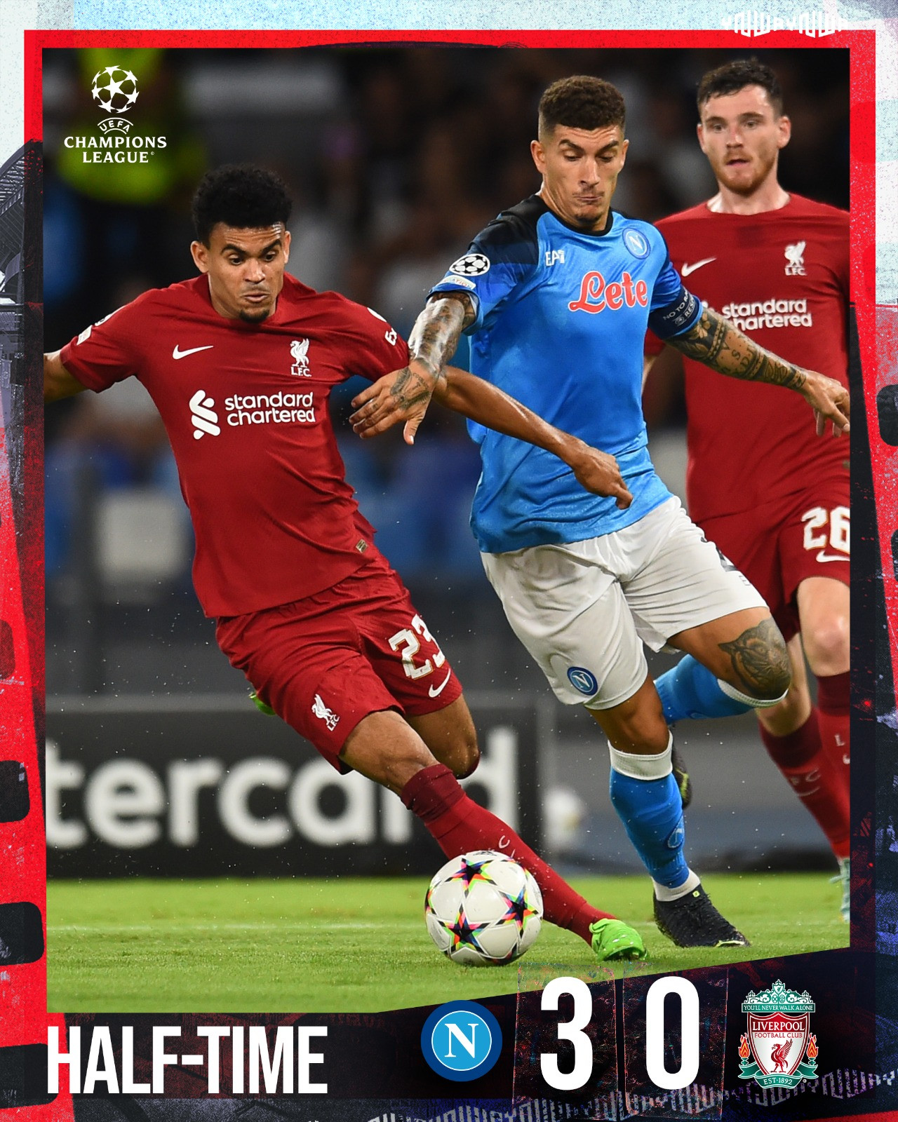 Napoli đang thi đấu chậm lại nhằm bảo toàn lợi thế dẫn trước. Ở chiều ngược lại, Liverpool chủ yếu dựa vào các tình huống gây đột biến từ Luis Diaz.