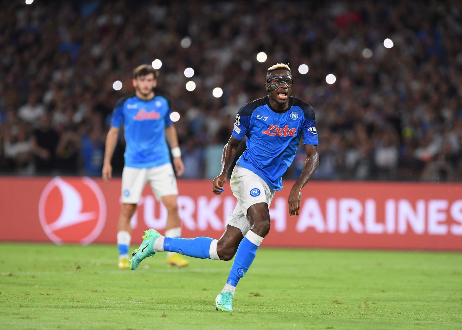 Osimhen dính chấn thương buộc phải rời sân sớm nhường chỗ cho Giovanni Simeone.