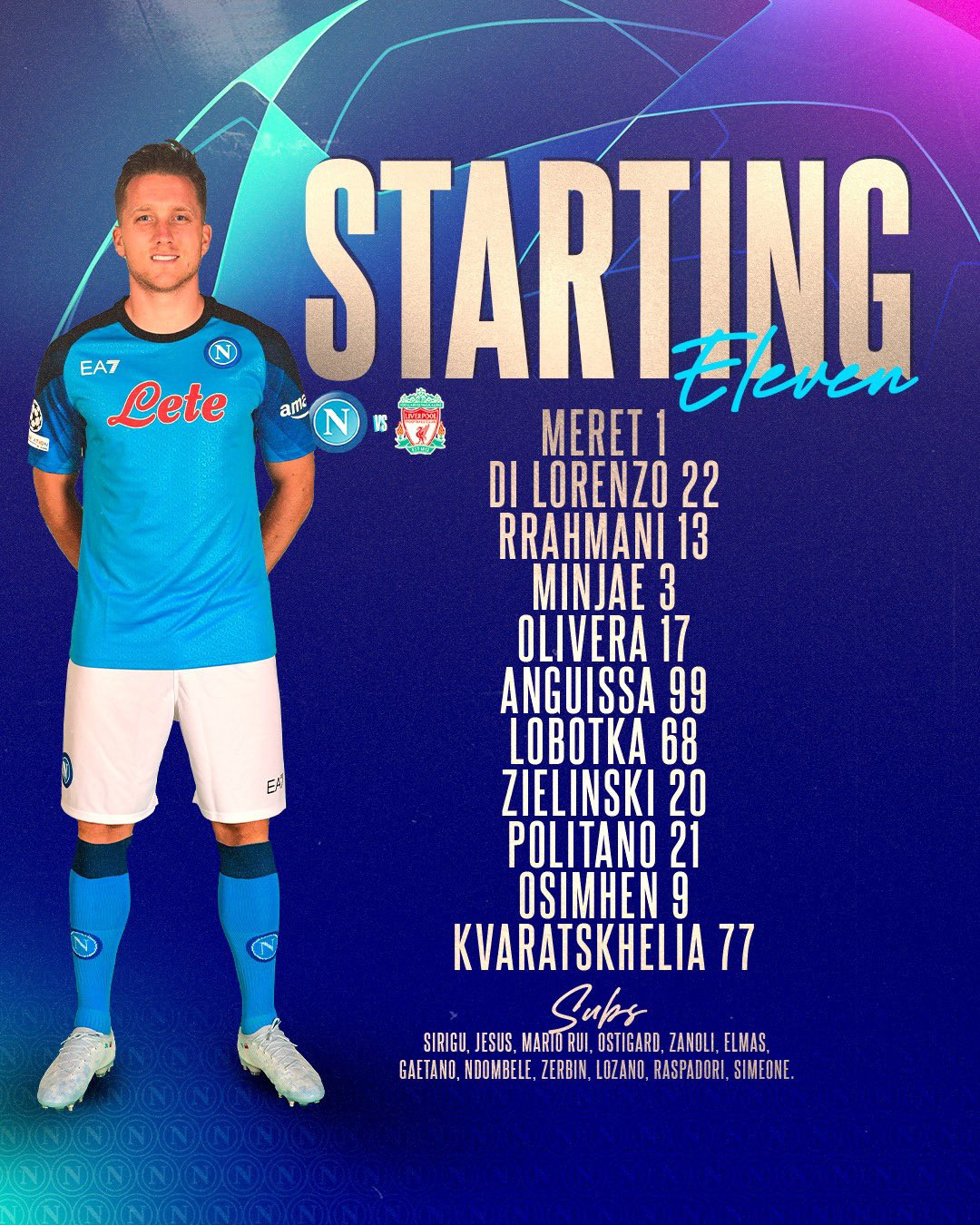 Napoli: Meret; Di Lorenzo, Kim, Rrahmani, Oliveira; Zielinski, Zambo, Lobotka; Politano (Lozano 57'), Kvaratskhelia (Zerbin 57'), Osimhen (Simeone 41').
