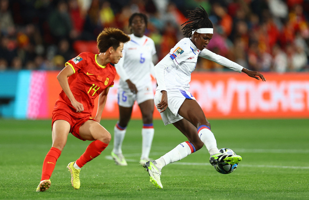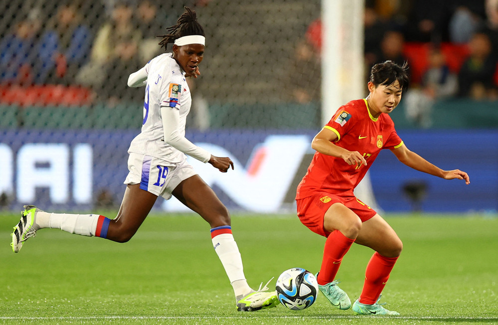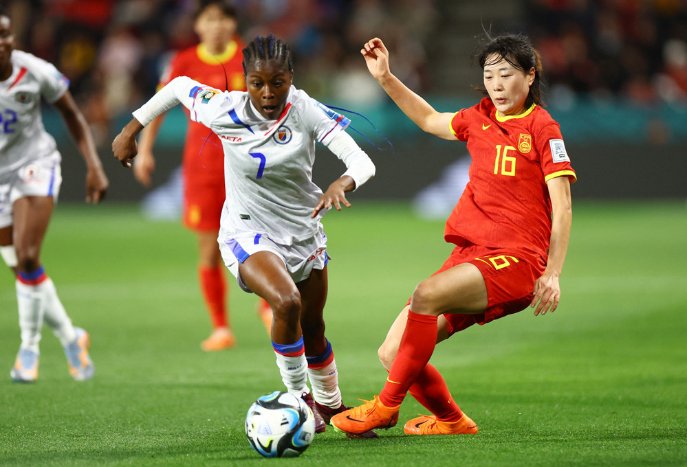 Nữ Trung Quốc đang đá pressing cực kỳ quyết tâm, không cho đối thủ có không gian chơi bóng. Ở chiều ngược lại, Haiti đang tập trung phòng ngự bên phần sân nhà.