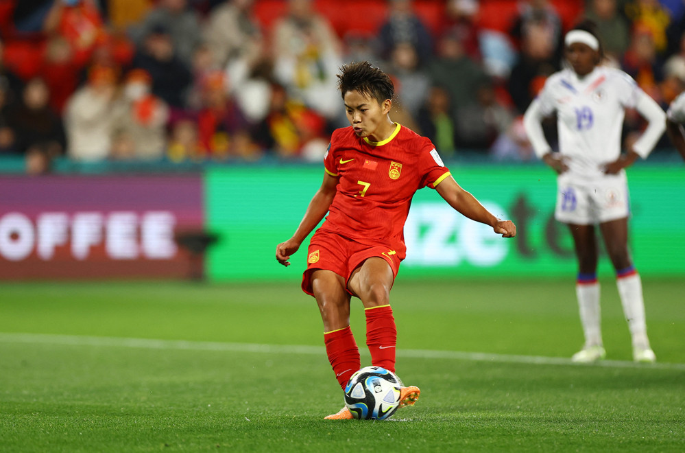 Zhang Ly xâm nhập vòng cấm buộc hậu vệ Haiti phải phạm lỗi. Sau khi tham khảo VAR, trọng tài quyết định cho nữ Trung quốc được hưởng phạt đền.