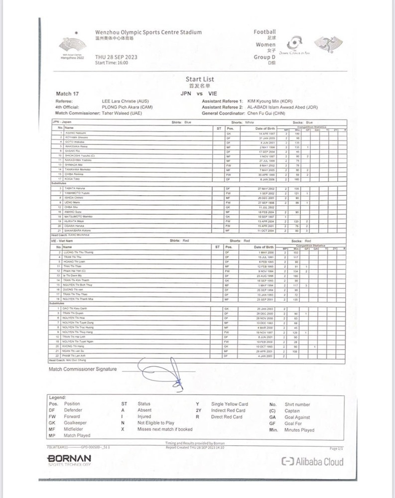 Đội hình xuất phát nữ Việt Nam vs nữ Nhật Bản