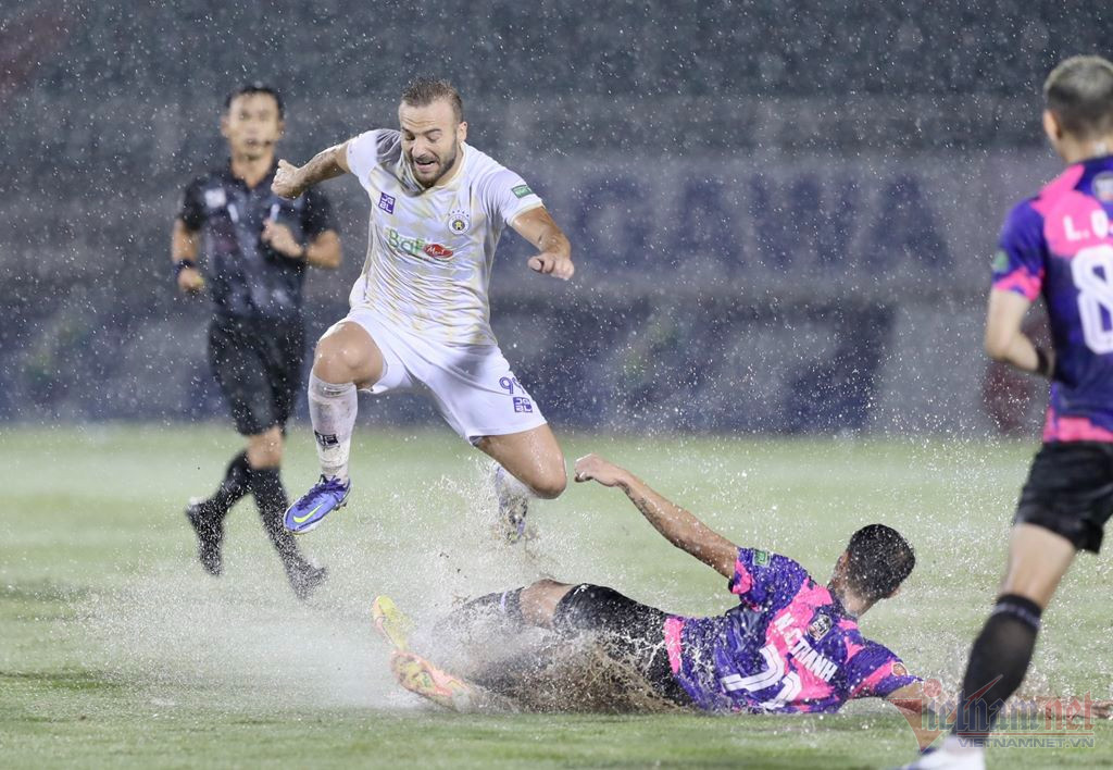 Cơn mưa nặng hạt khiến lối chơi của hai đội bị ảnh hưởng, các cầu thủ cũng rất dễ dính chấn thương.