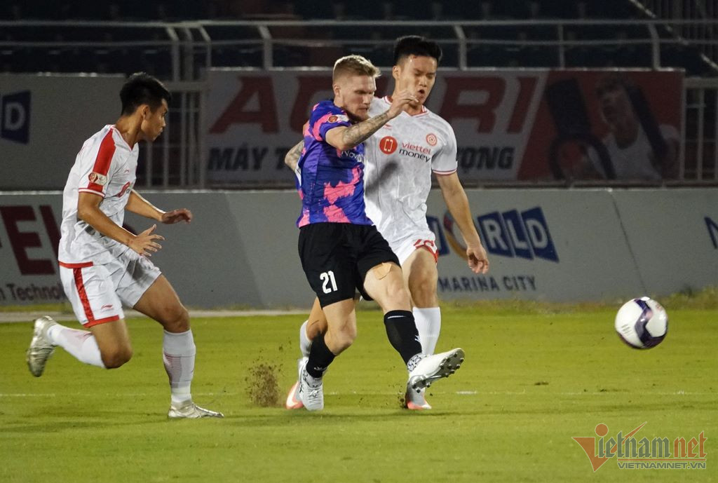Viettel vẫn đang tổ chức ép sân khiến hàng thủ của Sài Gòn liên tục phải làm việc.