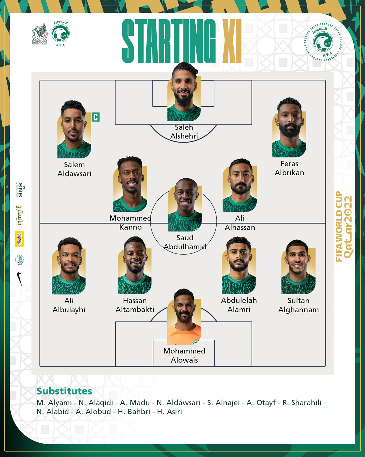 Đội hình xuất phát của Saudi Arabia: