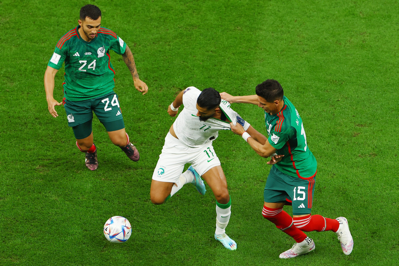 Mexico dần tìm cách giảm nhịp độ trận đấu sau những phút đầu đá nhanh. Saudi Arabia vẫn đang gây sức ép tốt ở khu vực giữa sân.