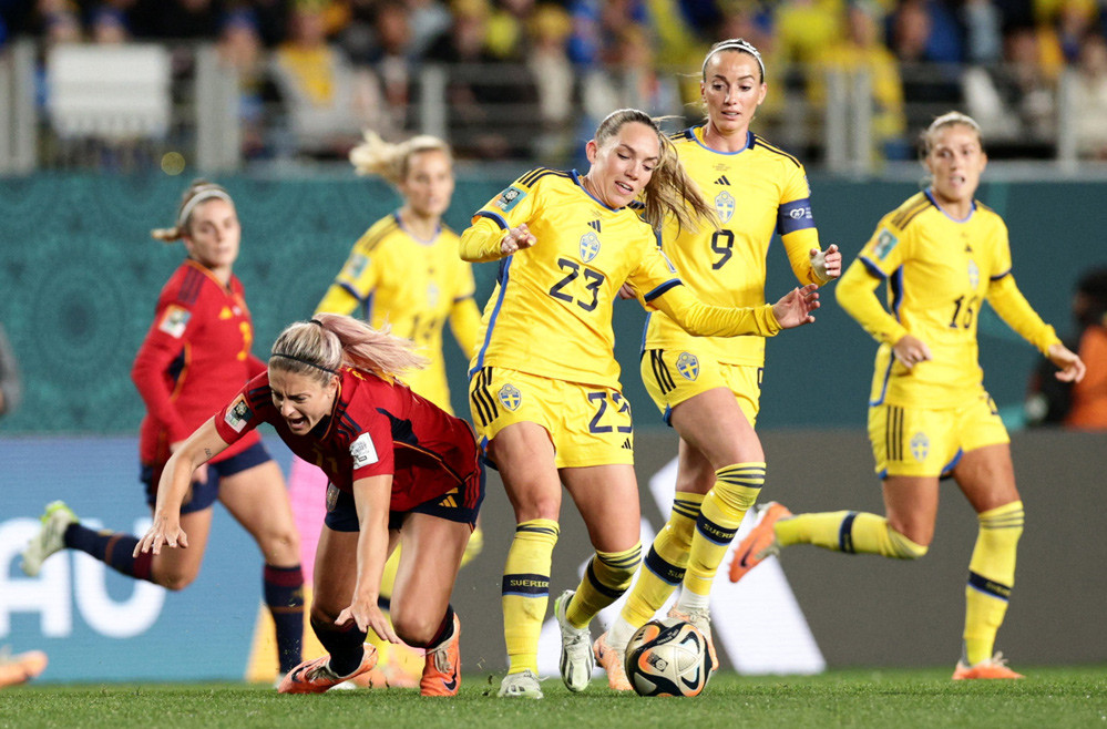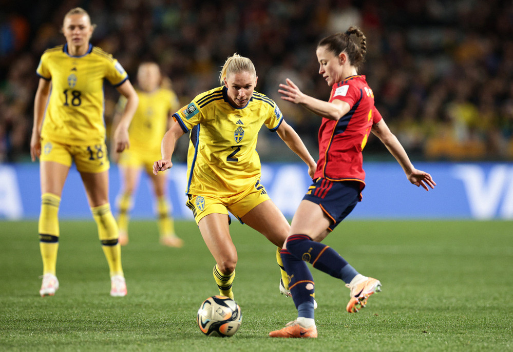 Nữ Tây Ban Nha nắm quyền kiểm soát cuộc chơi nhưng đang gặp khó khăn trong việc tìm đường vào khung thành nữ Thụy Điển.
