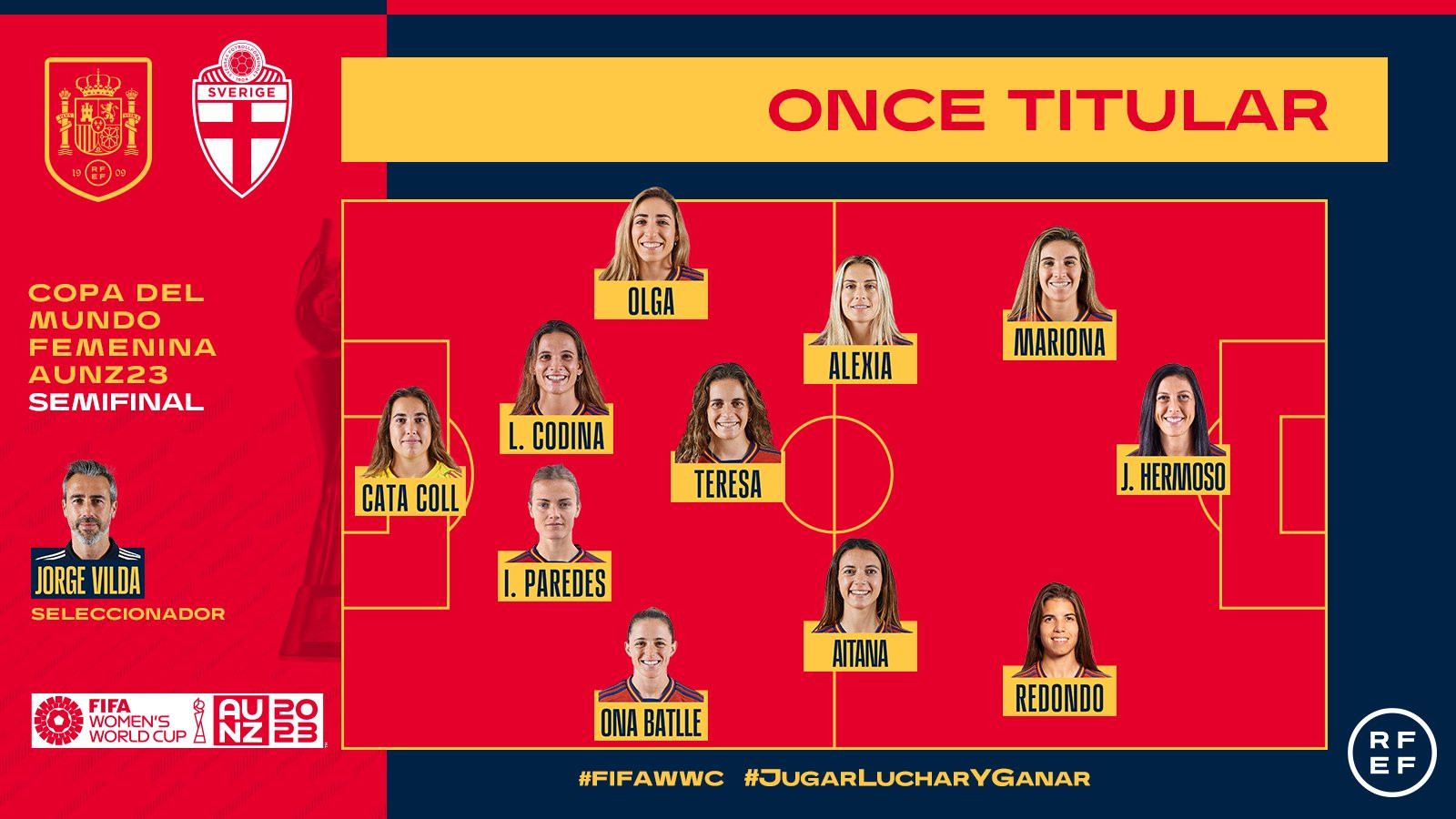 Bàn thắng (2-1, Olga): Nhận bóng ngay rìa vòng cấm, đội trưởng nữ Tây Ban Nha Olga nã đại bác bằng chân trái, bóng dội xà ngang khung thành nữ Thụy Điển đi vào lưới mang đến niềm vui vỡ òa.