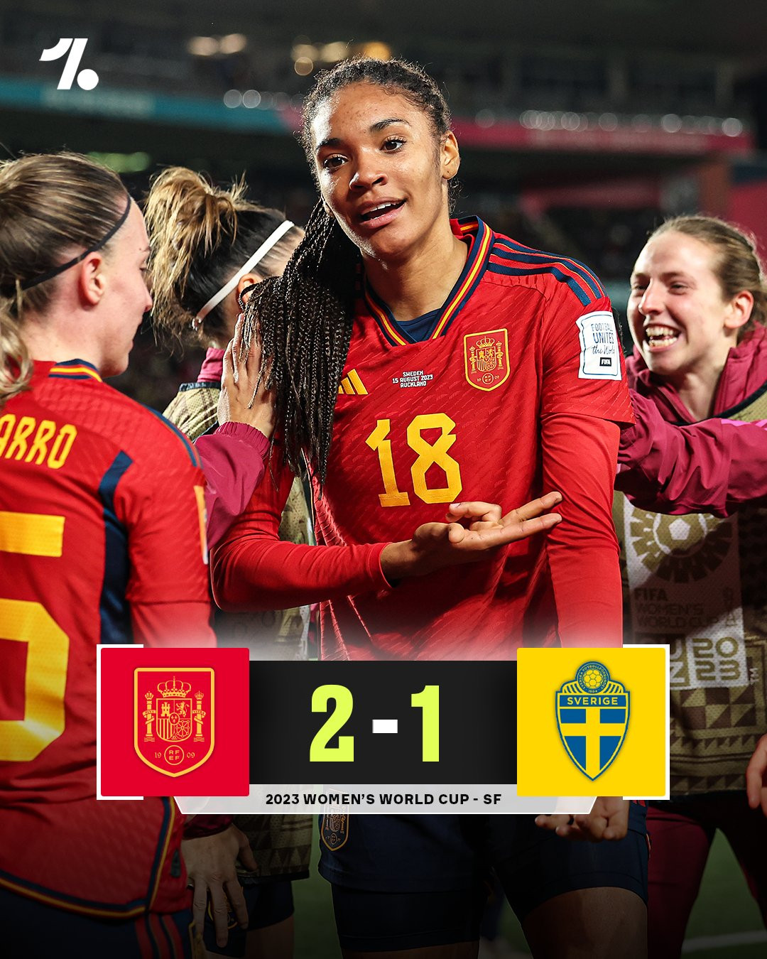 Bàn thắng (1-0, Paralluelo): Sau tình huống phá ra thiếu dứt khoát của hậu vệ Thụy Điển, Paralluelo quăng chân dứt điểm căng hiểm hóc mở tỷ số cho nữ Tây Ban Nha.