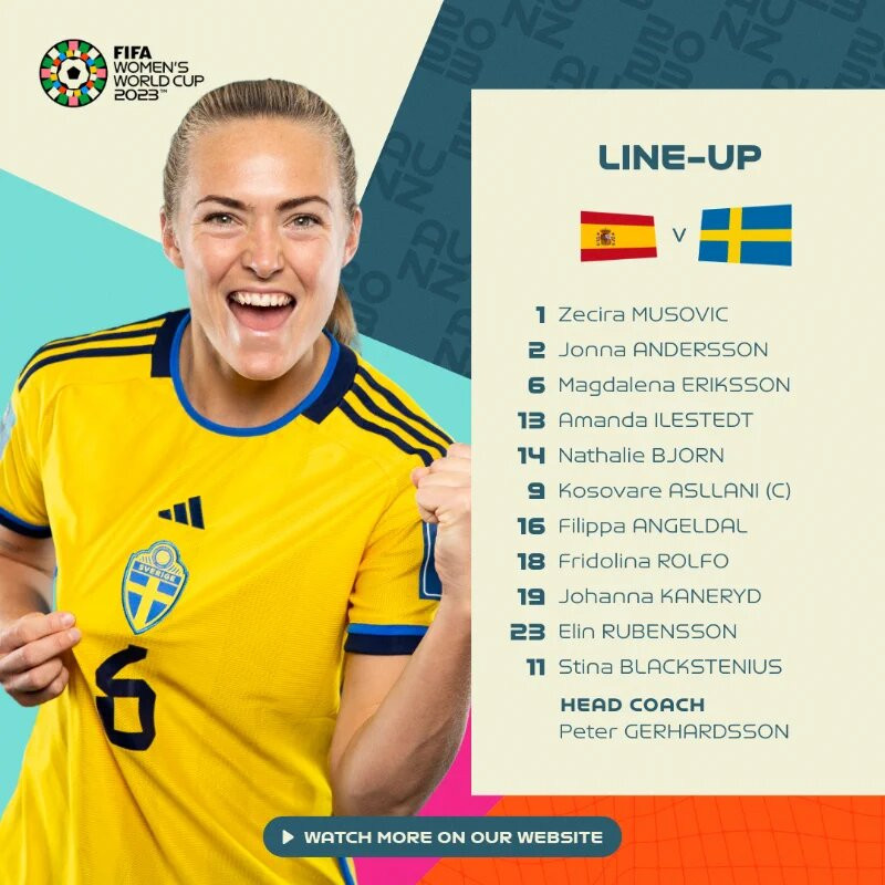 Nữ Thụy Điển: Musovic; Bjorn, Ilestedt, Eriksson, Andersson; Angeldahl, Asslani, Rubensson; Kaneryd (Schough 77'), Blackstenius (Blomqvist 77'), Rolfo