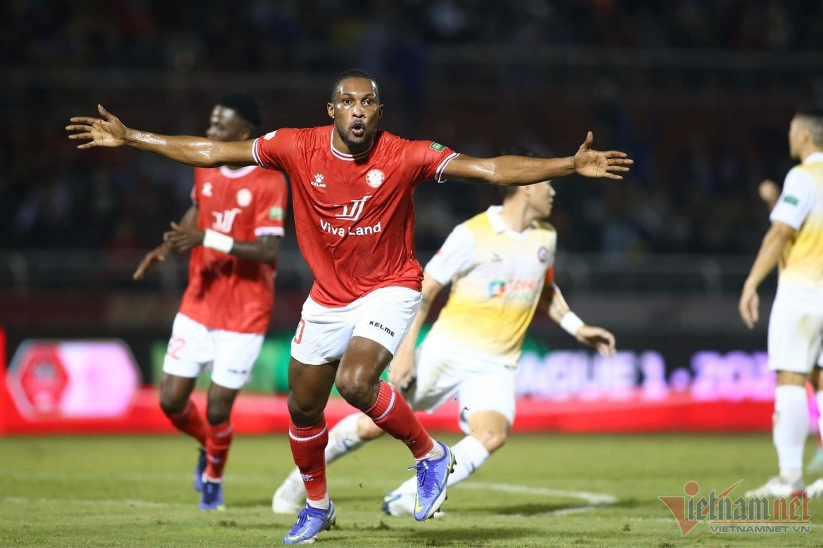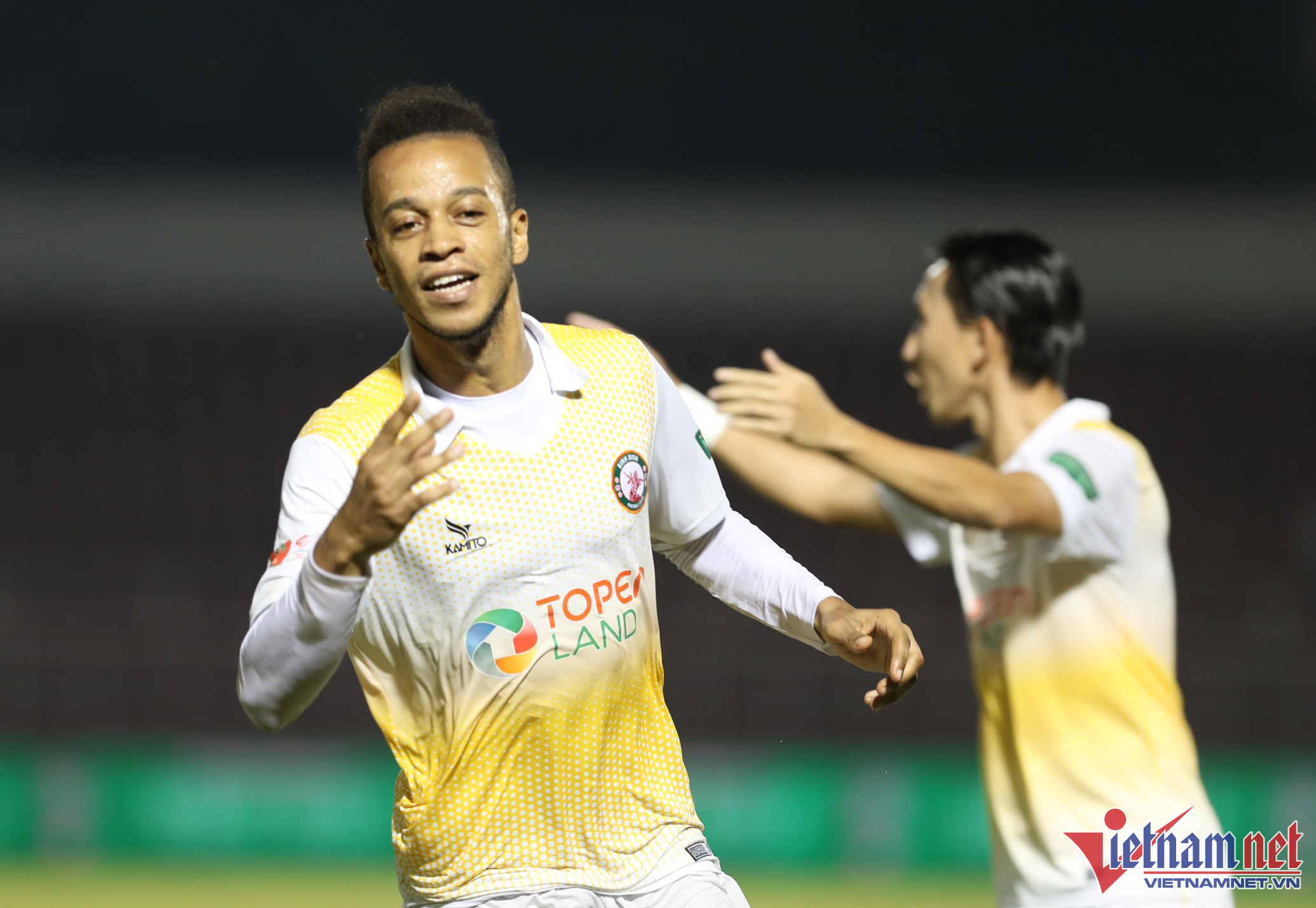 Jermie Lynch bật lên tranh chấp trong vòng cấm tạo cơ hội ngon ăn để Hồ Tấn Tài sút tung lưới TPHCM lần thứ hai chỉ trong ít phút.