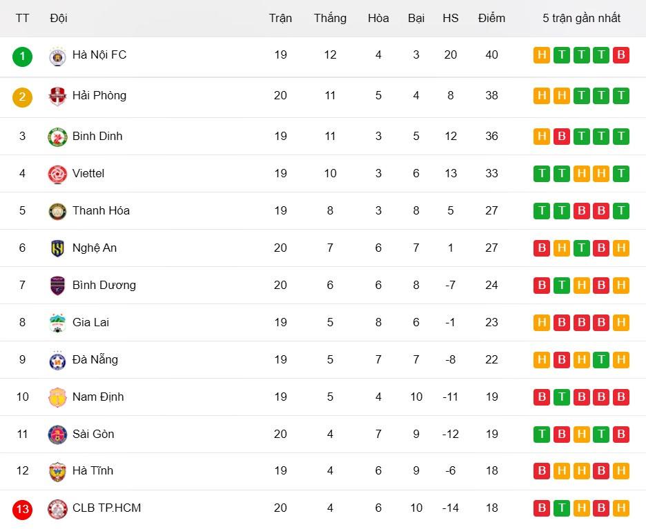 Trận đấu kết thúc với tỉ số hòa 2-2. Kết quả này không đủ giúp TPHCM thoát khỏi vị trí cuối bảng xếp hạng V-League sau vòng 21.