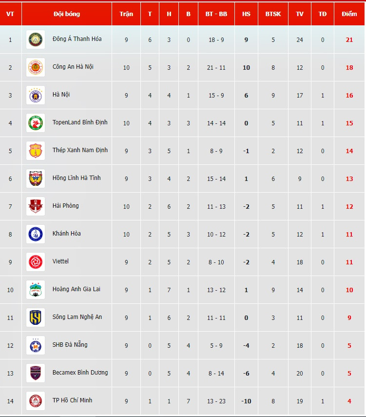 Bảng xếp hạng V-League 2023 vòng 10 mới nhất: CAHN hòa, Thanh Hòa mừng thầm