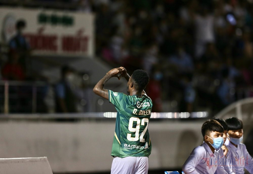 Daniel Green chớp thời cơ, xâm nhập vòng cấm rồi tung cú sút căng và chìm đánh bại thủ môn Đình Triệu đưa TPHCM vượt lên dẫn 2-1.