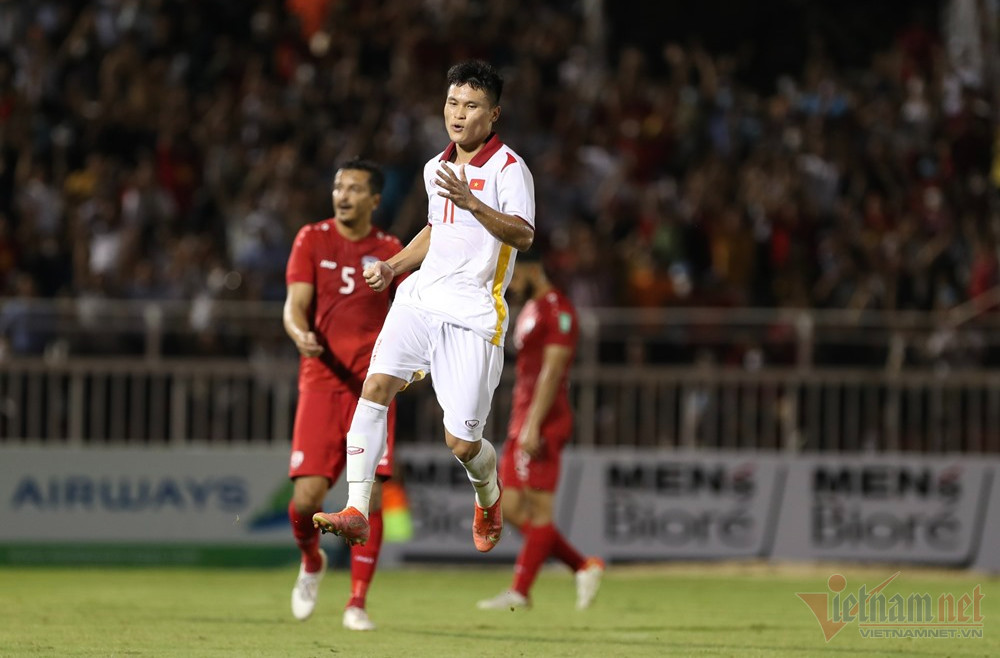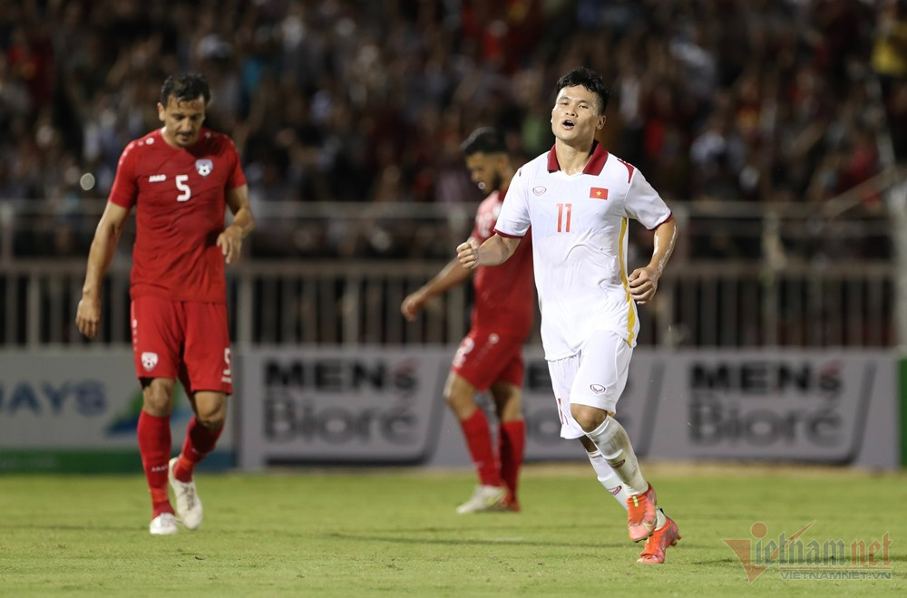 Quang Hải đá phạt góc để trung vệ Schmidt đánh đầu chiến thuật, tiền đạo Tuấn Hải lập tức tiếp ứng đánh đầu nối cận thành làm tung lưới Afghanistan.