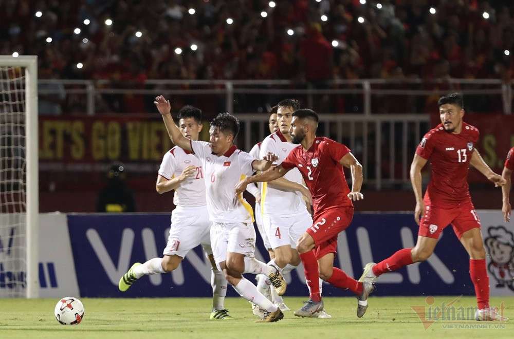 Cầu thủ Việt Nam để mất bóng từ giữa sân tạo cơ hội để Afghanistan tổ chức phản công nhanh. May cho chủ nhà khi hậu vệ áo trắng kịp lao về bọc lót.
