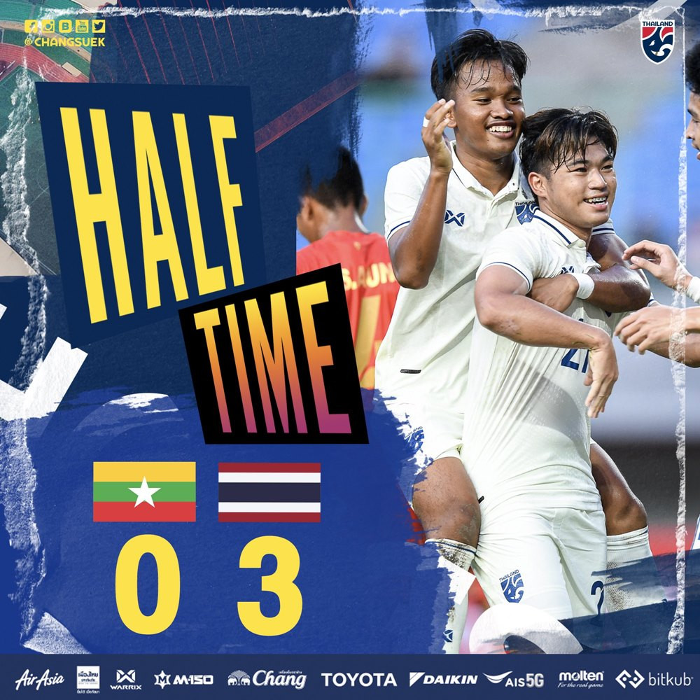 Hiệp một khép lại với tỷ số 3-0 tạm nghiêng về phía U19 Thái Lan.