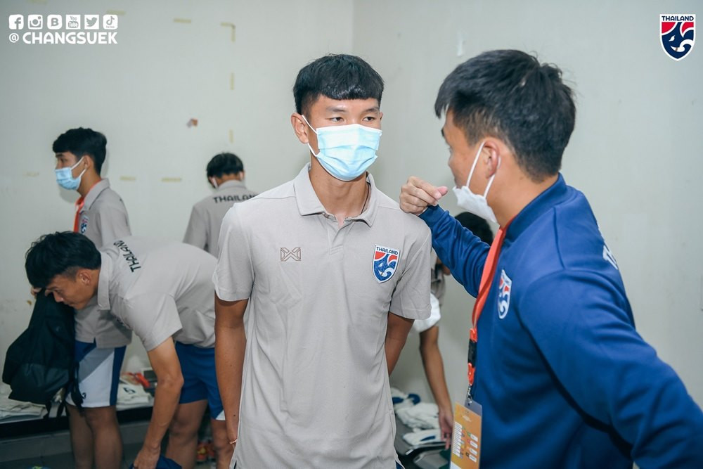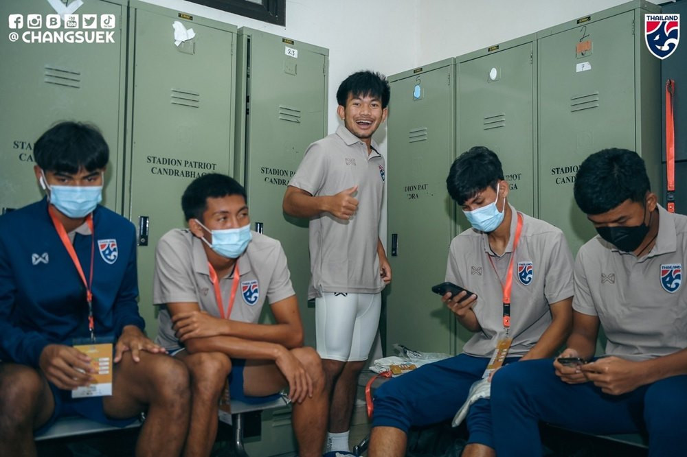 Các cầu thủ U19 Thái Lan trong phòng thay đồ trước trận đấu.