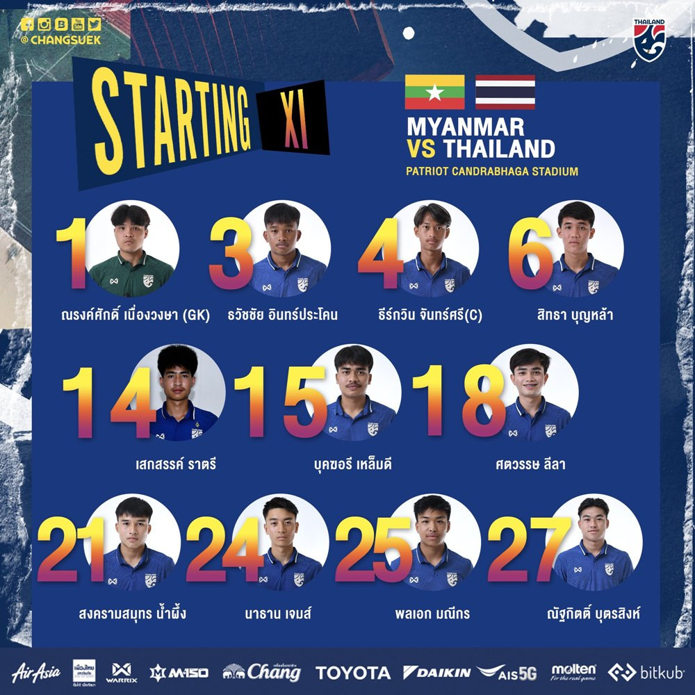 U19 Thái Lan: Nuangwongsa, Nathan James, Chonnapat Buaphan, Bukkoree Lemdee, Chansri, Patiparnchai Phothep, Sittha Boonlha, Thanawat Saipetch, Pornsawan Sankla, Nattakit Butsing, Winai Aimoat.