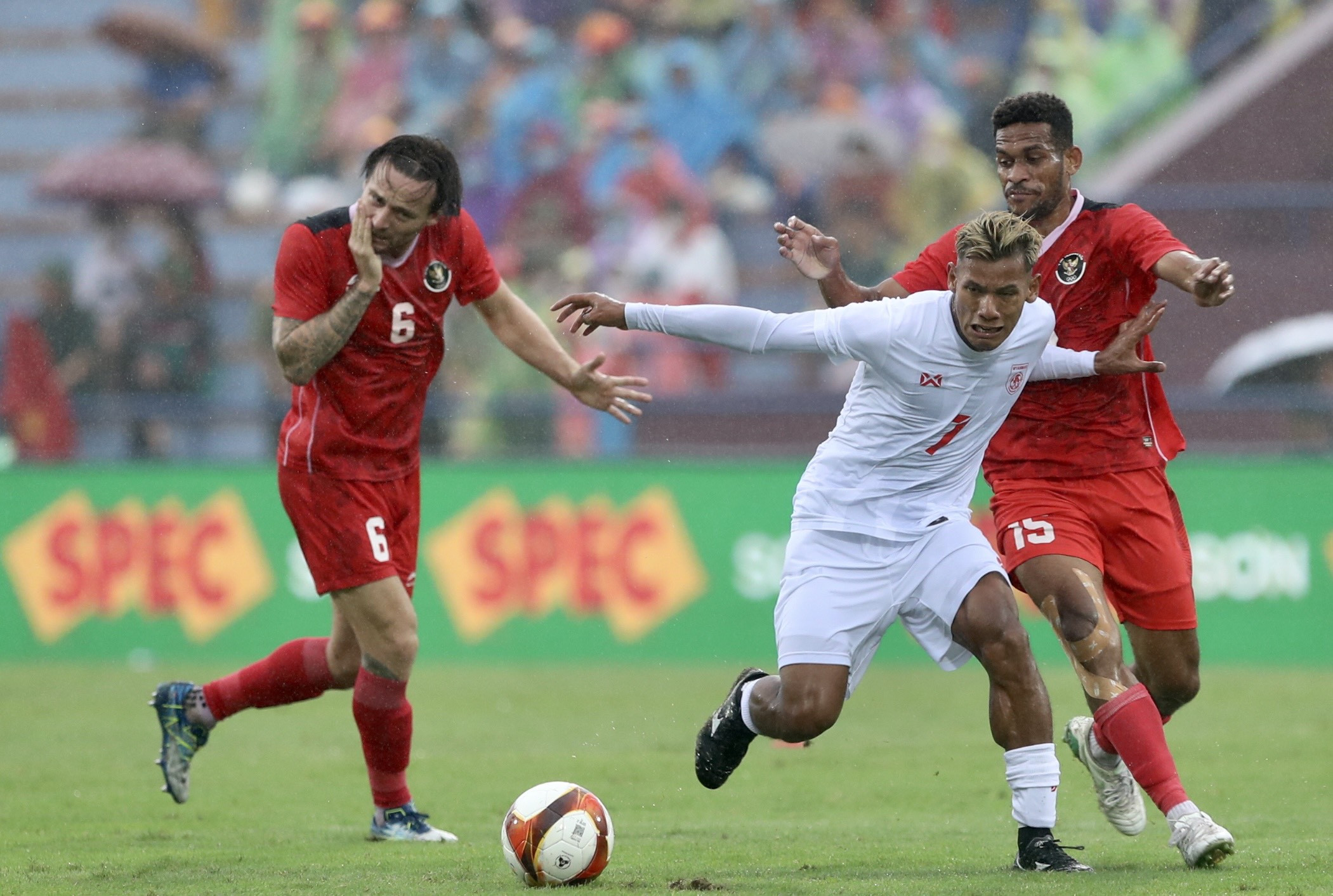 Win Naing Tun đưa được bóng vào lưới U23 Indonesia nhưng trước đó đồng đội của anh đã rơi vào thế việt vị.