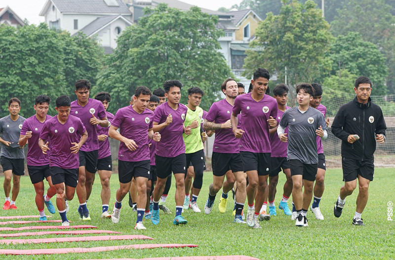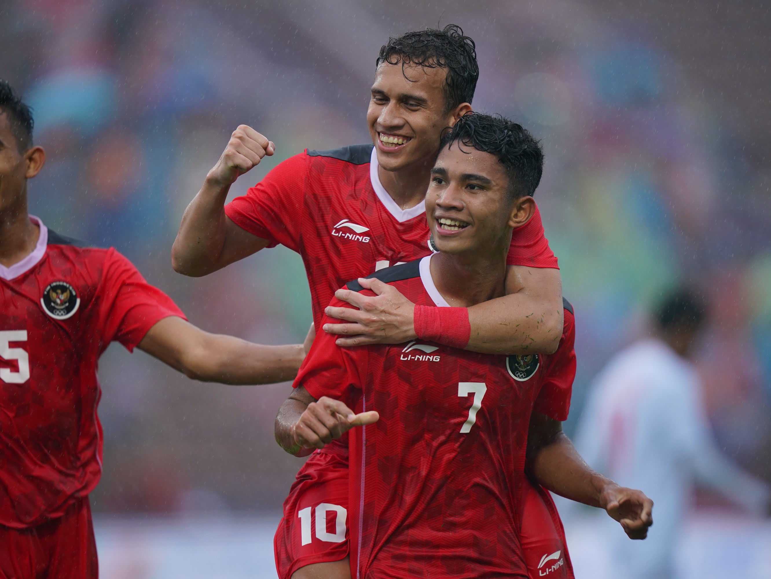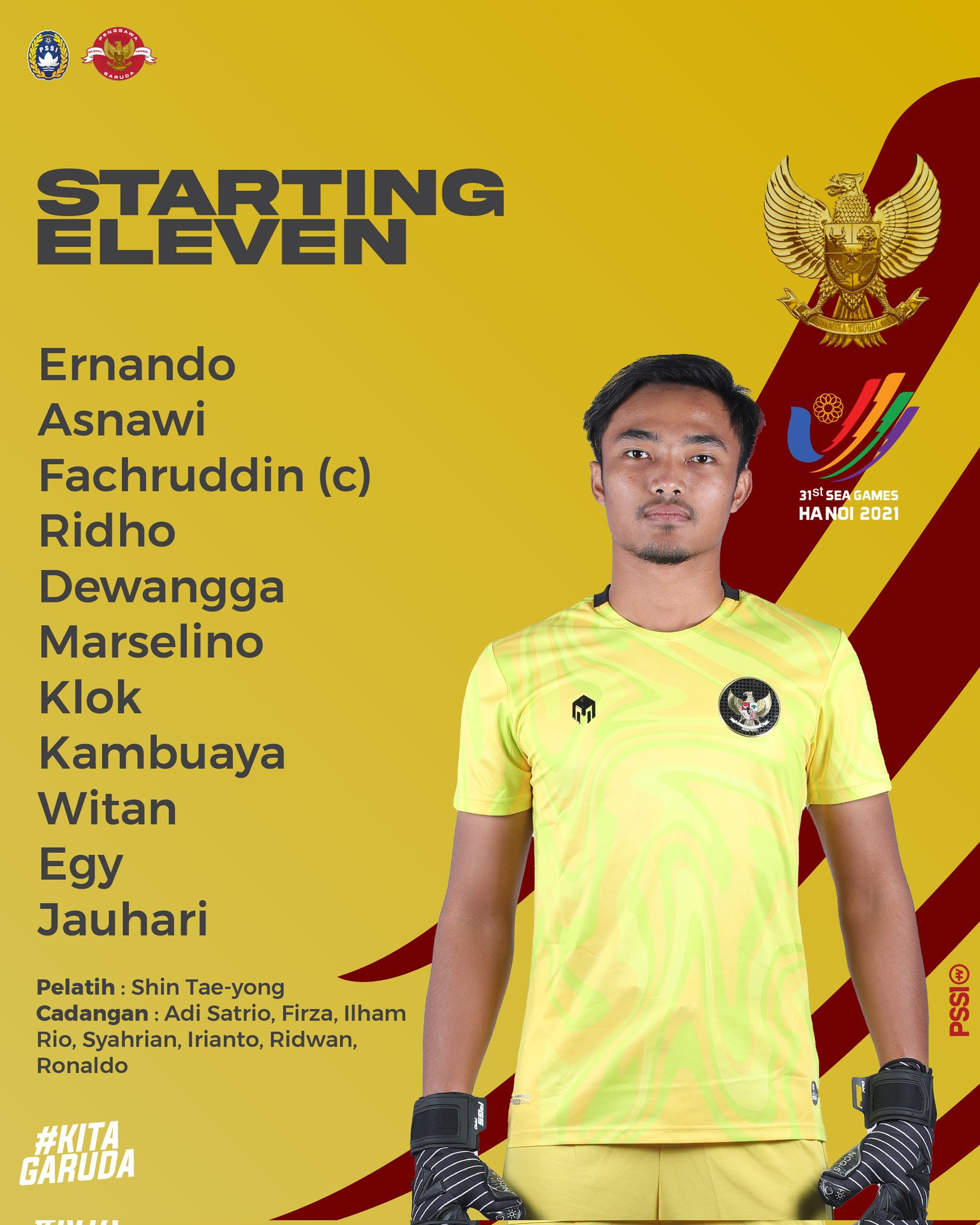 U23 Indonesia: Ernando, Asnawi, Fachruddin, Ridho, Dewangga, Marselino, Klok, Ricky, Witan, Egy, Irfan.