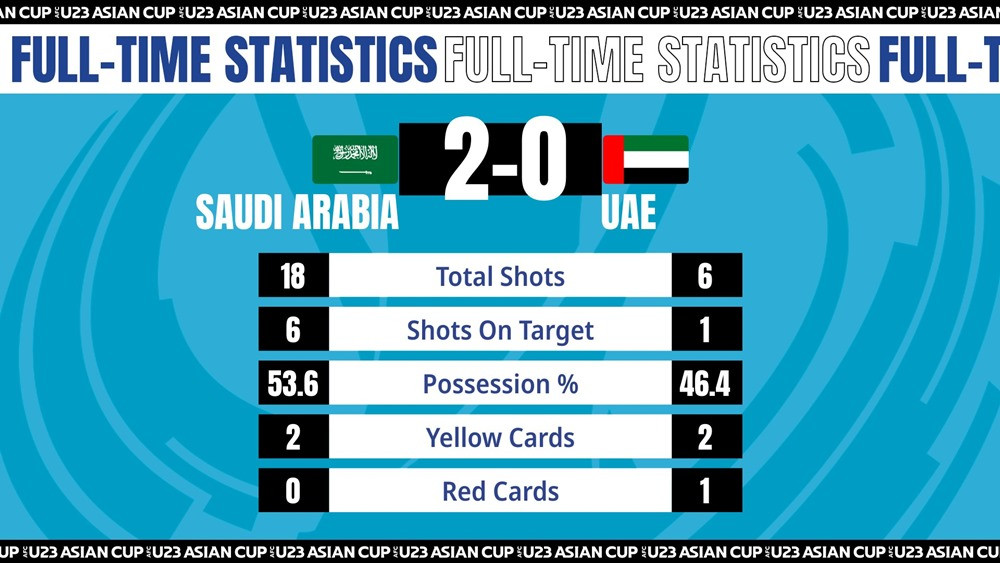 Chung cuộc, U23 Saudi Arabia giành chiến thắng 2-0 để giữ ngôi đầu bảng D. Bởi ở trận đấu cùng giờ, U23 Nhật Bản dù đánh bại U23 Tajikitstan 3-0 nhưng vẫn phải xếp sau đội bóng Tây Á khi thua về hiệu số bàn thắng - bại.
