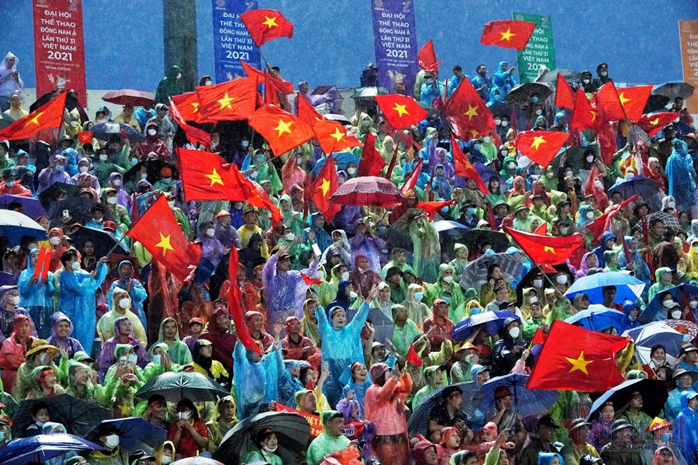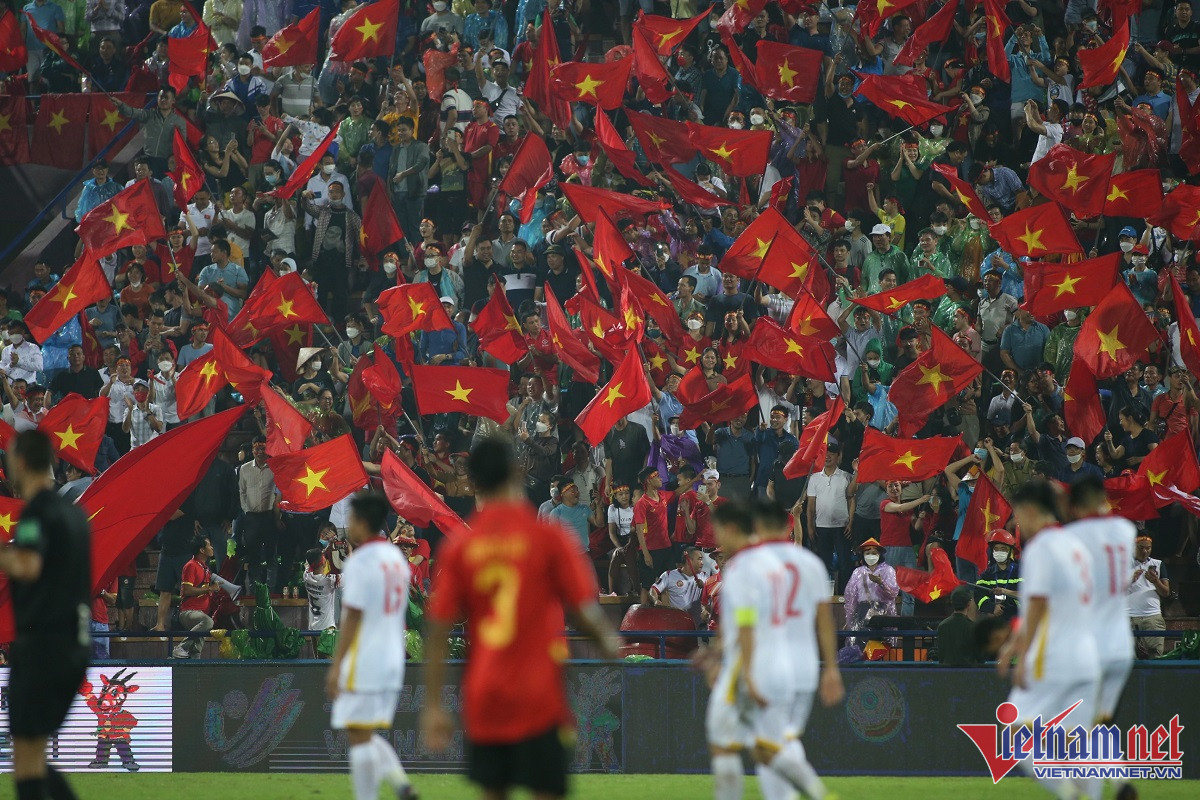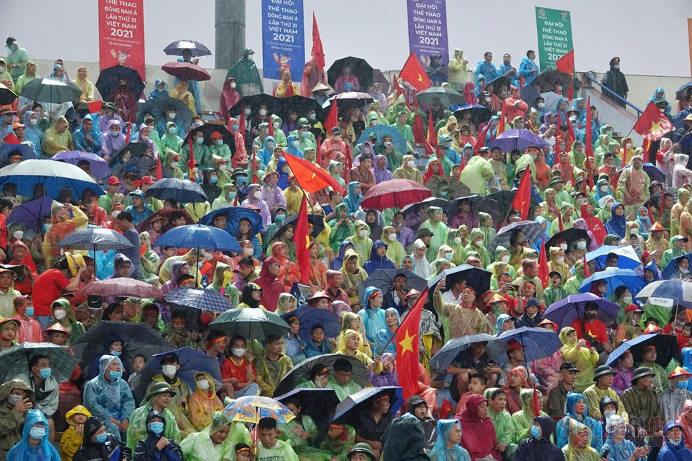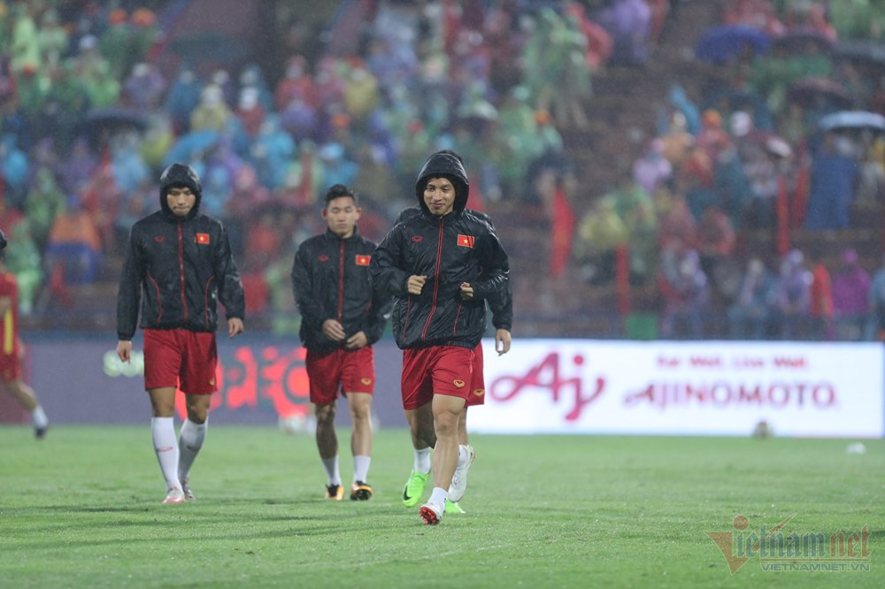 Dù mưa rơi khá dày trên sân Việt Trì nhưng đông đảo khán giả vẫn đổ vào sân để tiếp lửa thầy trò HLV Park Hang Seo.