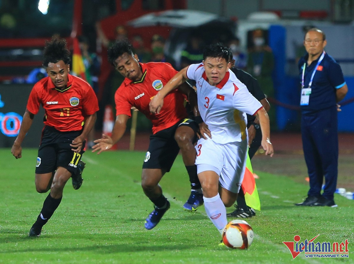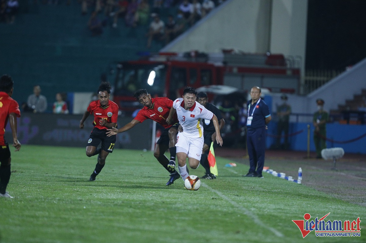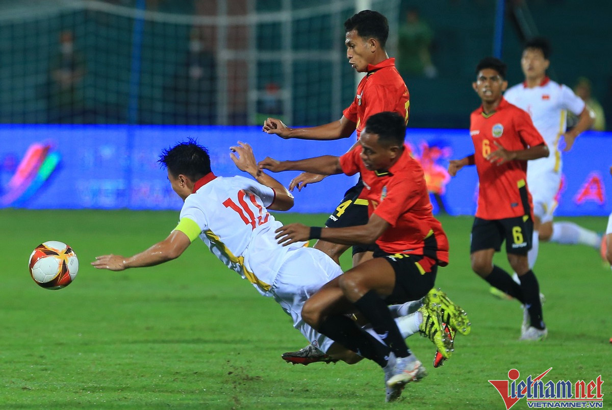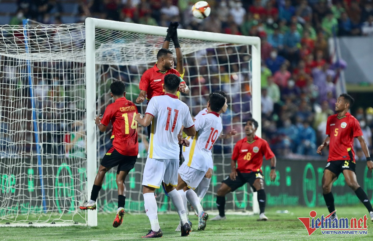 Thi đấu lấn lướt nhưng sức ép mà đội chủ nhà của SEA Games 31 tạo ra vẫn chưa đủ lớn trước khung thành Timor Leste.