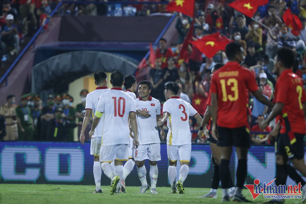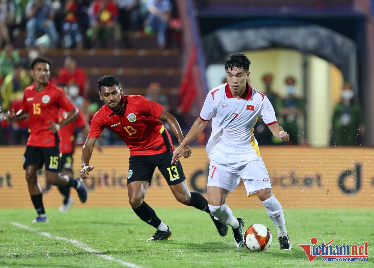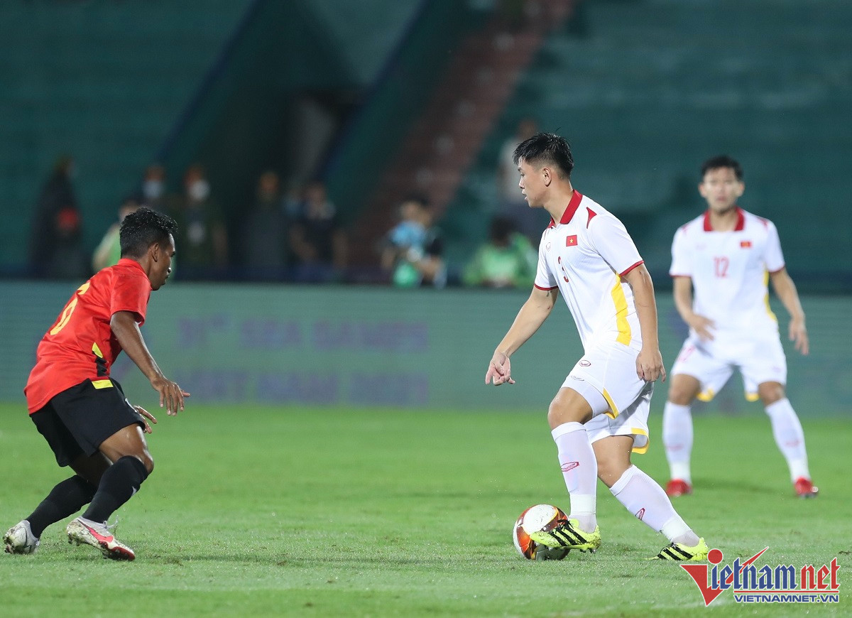 Thi đấu lấn lướt nhưng sức ép mà đội chủ nhà của SEA Games 31 tạo ra vẫn chưa đủ lớn trước khung thành Timor Leste.
