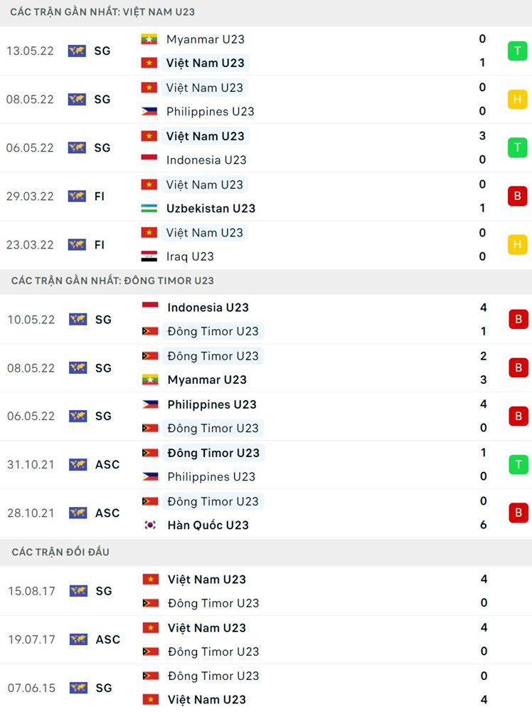 Đội hình ra sân U23 Việt Nam vs U23 Timor Leste