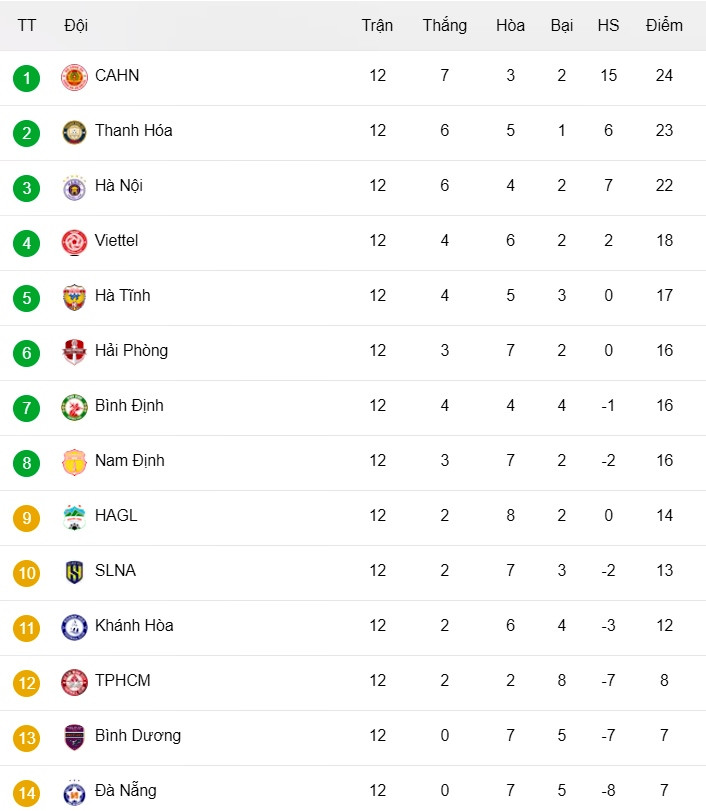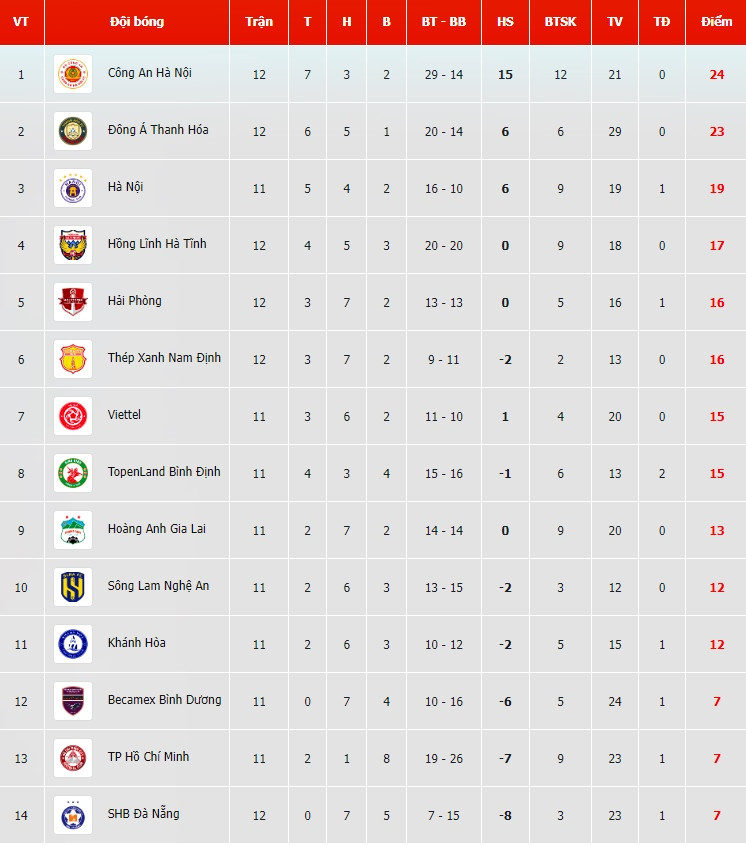 Bảng xếp hạng V-League 2023 vòng 12 mới nhất: CAHN lên đỉnh bảng