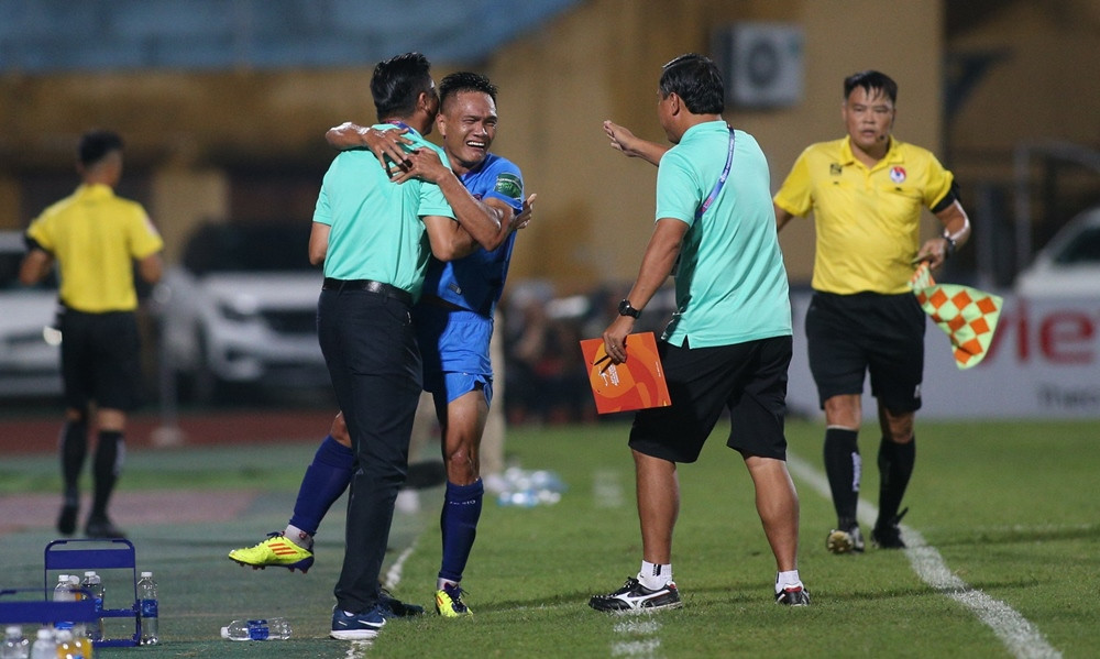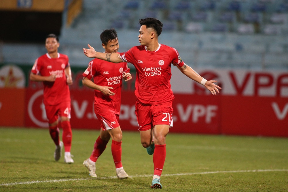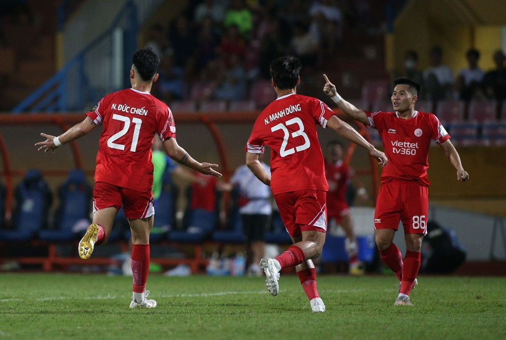 Nhận bóng từ chân đồng đội, Đức Chiến dứt điểm sát vòng cấm, thủ môn Minh Toàn để bóng vuột qua tay rồi lăn vào lưới. Một bàn thắng có phần may mắn của Viettel.