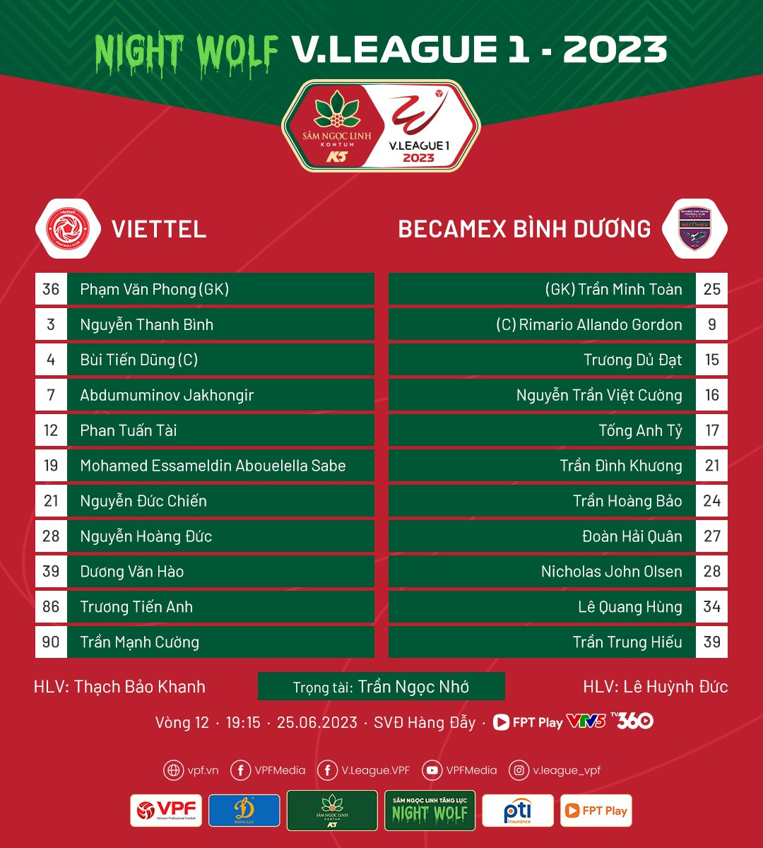 Đội hình xuất phát Viettel vs Bình Dương