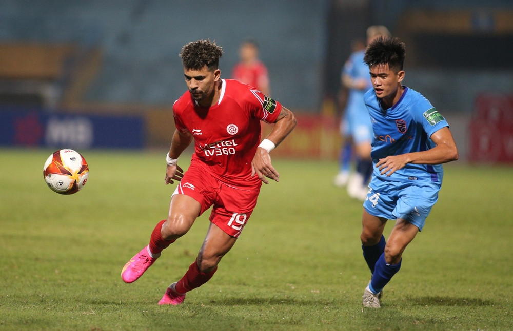 Rimario phải nhận thẻ vàng sau pha vào bóng rất quyết liệt đối với Hoàng Đức. May cho Viettel khi tiền vệ mang áo số 28 có thể tiếp tục thi đấu.