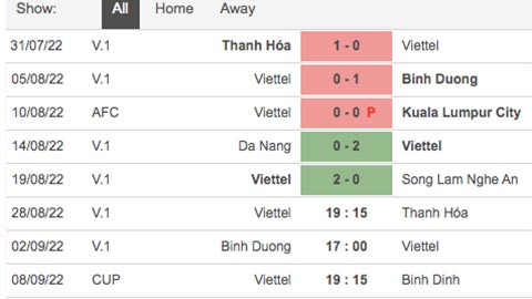 Đội hình xuất phát Viettel vs Thanh Hóa