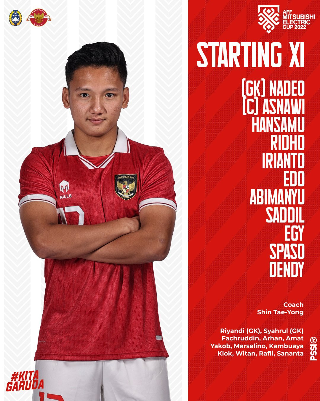 Indonesia: 22 - Nadeo, Asnawi, 16 - Hansamu, 5 - Ridho, 13 - Irianto, 3 - Edo, 17 - Abimanyu, 7 - Saddil, 10 - Egy, 9 - Spaso, 11 - Dendy