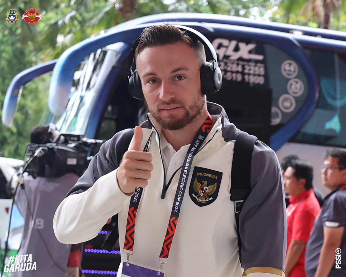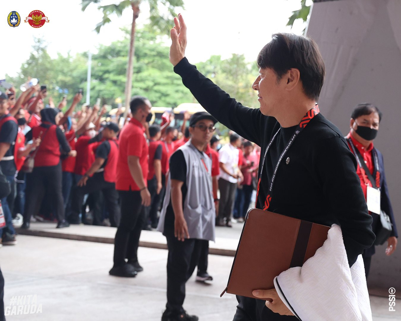 Thầy trò HLV Shin Tae-yong đến sân. Ảnh: PSSI