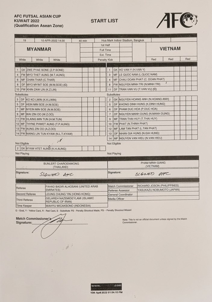 Thủ thành Hồ Văn Ý trở thành người hùng của tuyển futsal Việt Nam khi cản phá thành công hai quả luân lưu. Trong khi Văn Vũ, Đức Hòa, Đình Hùng và Minh Trí đều kết thúc chính xác để giúp thầy trò HLV Phạm Minh Giang giành chiến thắng 4-1 trước đối thủ khó chơi Myanmar.