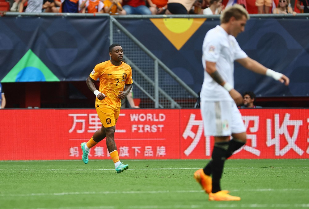 Cody Gakpo treo bóng vào vòng cấm để Wout Weghorst đánh đầu đưa đến vị trí của Bergwijn. Cựu cầu thủ Tottenham xử lý khéo léo rồi sút tung lưới Italy.