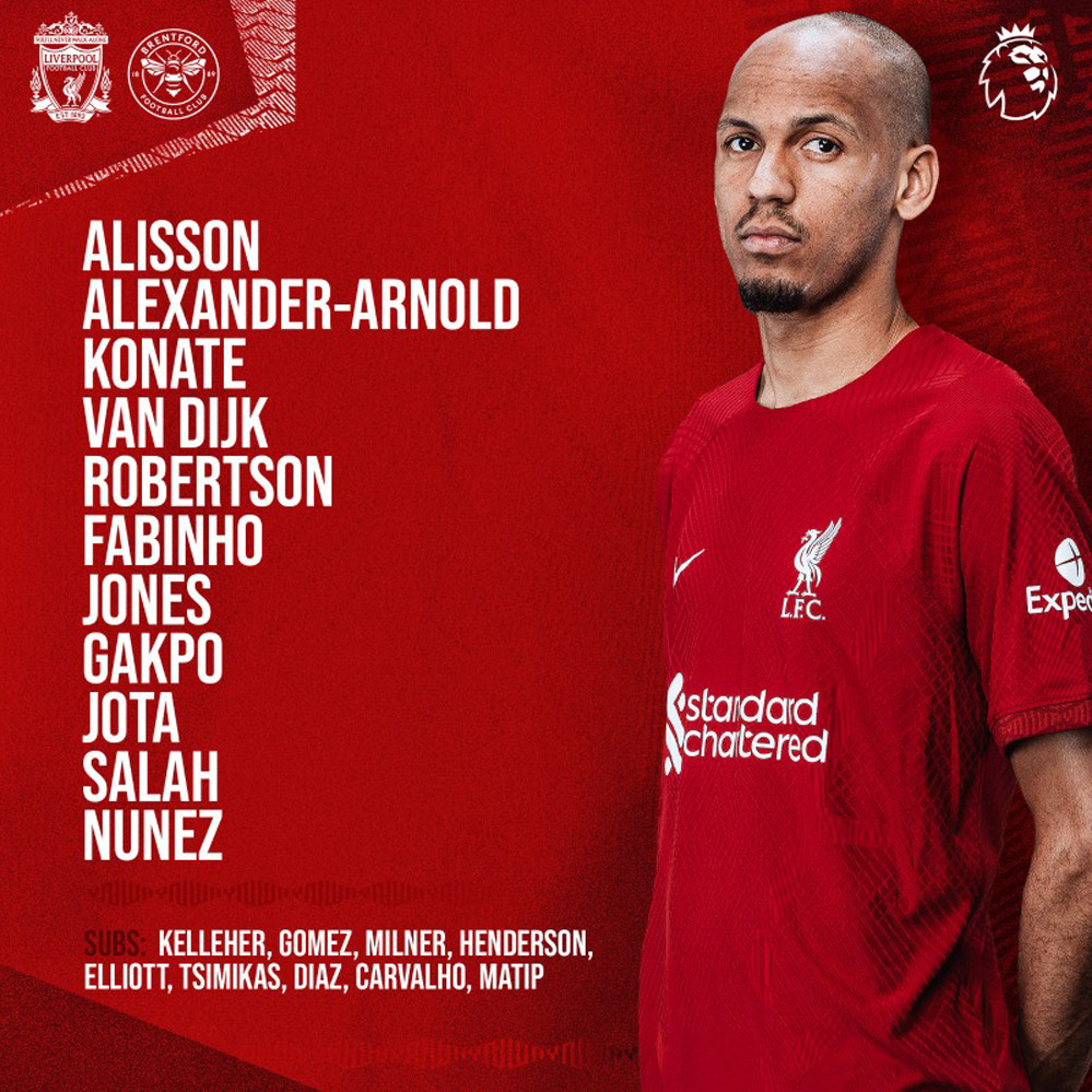 Liverpool: Alisson; Alexander-Arnold, Konate, Van Dijk, Robertson; Jones, Fabinho, Jota; Salah, Nunez, Gakpo.