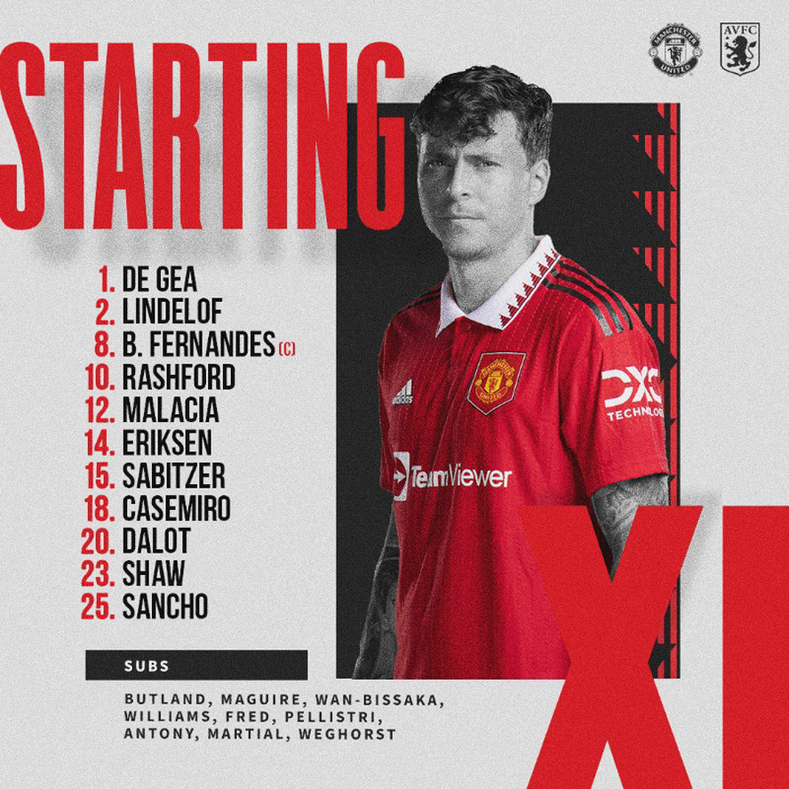 MU: De Gea; Malacia, Lindelof, Shaw, Dalot; Casemiro, Eriksen (Fred 76'), Fernandes; Sabitzer (Maguire 86'), Rashford (Martial 86'), Sancho (Antony 76')