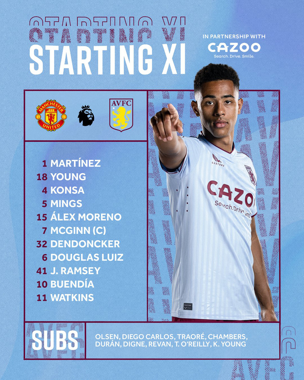 Aston Villa: Martinez; Young, Konsa, Mings, Alex Moreno; Dendoncker, Douglas Luiz, McGinn, Buendia, Ramsey; Watkins.