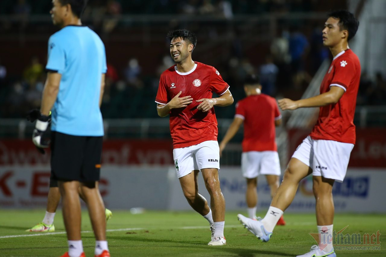 Lee Nguyễn và các cầu thủ TPHCM khởi động trước trận đấu.