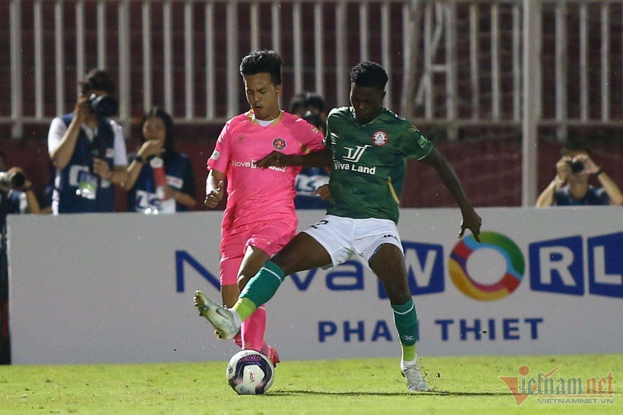 Cơ hội dứt điểm dành cho Sài Gòn, song cú đá từ ngoài vòng cấm của Hữu Sơn lại đưa bóng đi không trúng đích.