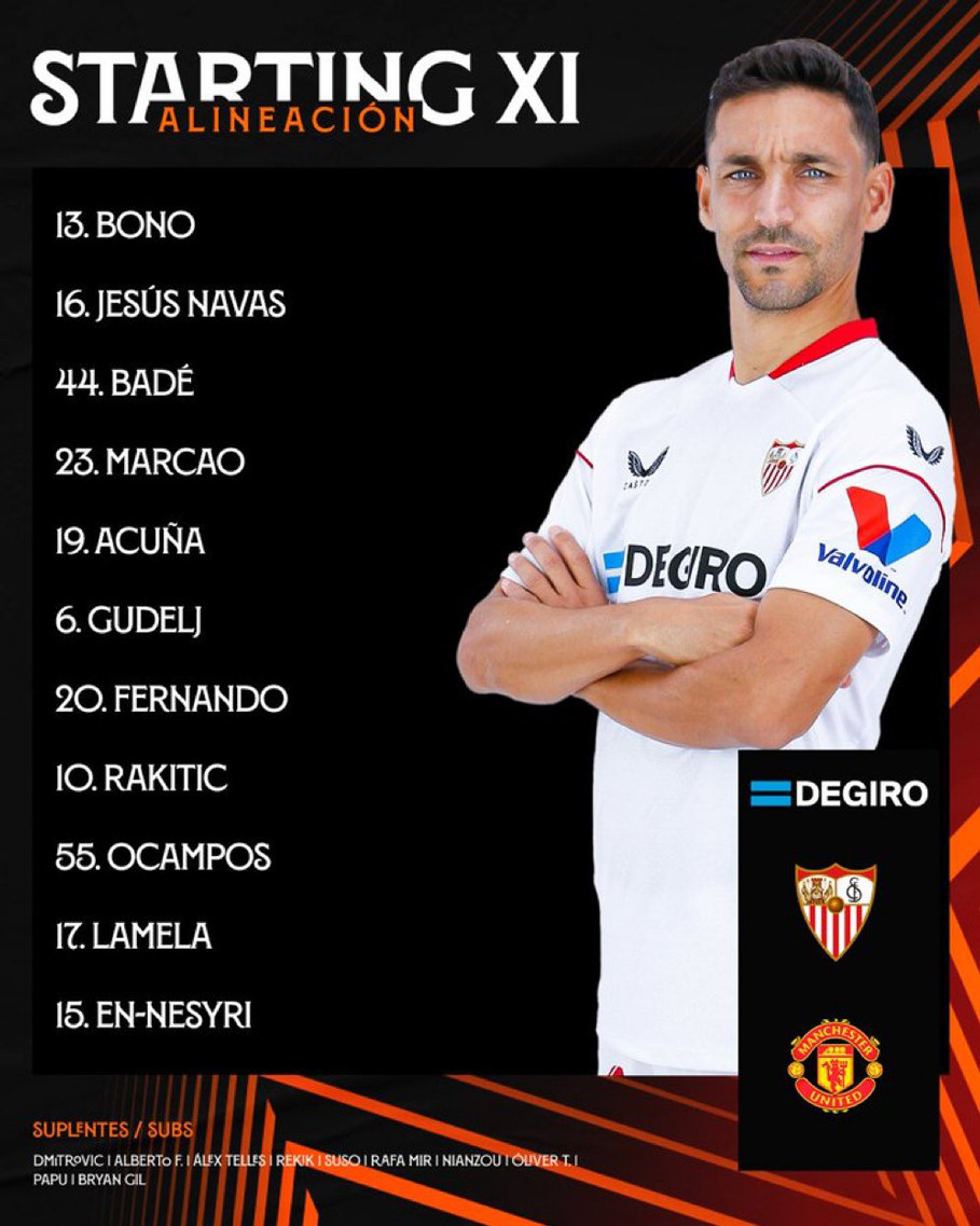 Sevilla: Bounou; Navas, Bade, Marcao, Acuna; Fernando, Gudelj; Ocampos, Rakitic, Lamela; En-Nesyri.
