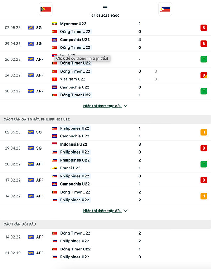 Thành tích đối đầu và phong độ U22 Philippines vs U22 Timor Leste