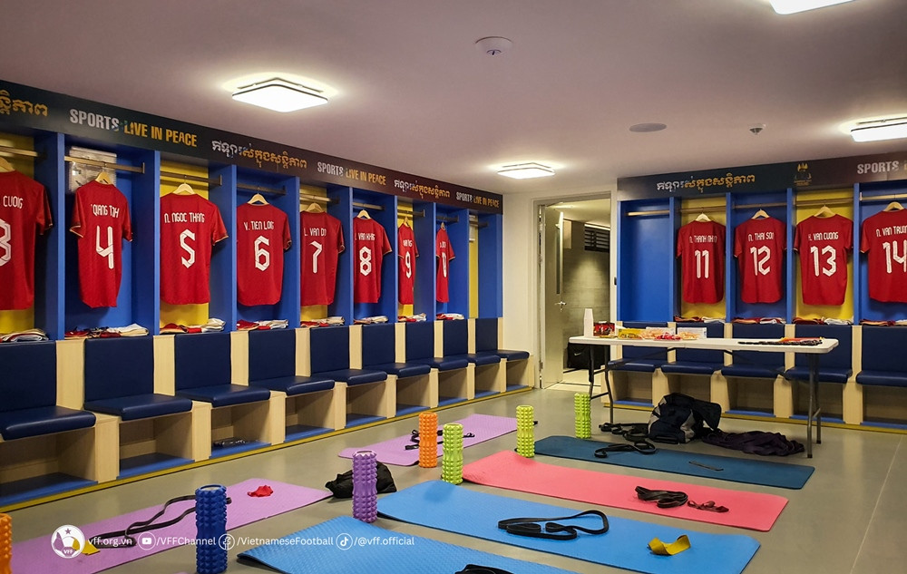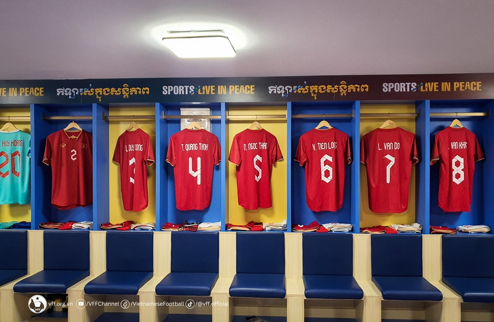Phòng thay đồ U22 Việt Nam trước trận đấu