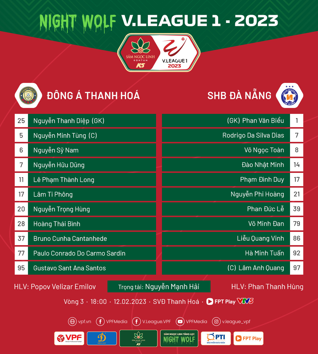 Đội hình xuất phát Thanh Hóa vs Đà Nẵng