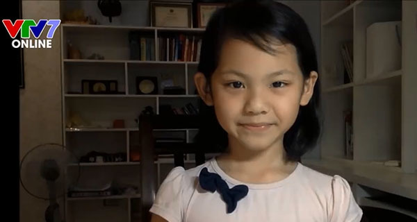 Nguyễn Hoàng Minh An, 7 tuổi, tới từ Hà Nội là khách mời trong chương trình 8IELTS phát sóng trên kênh truyền hình giáo dục VTV7 ngày 16/4.