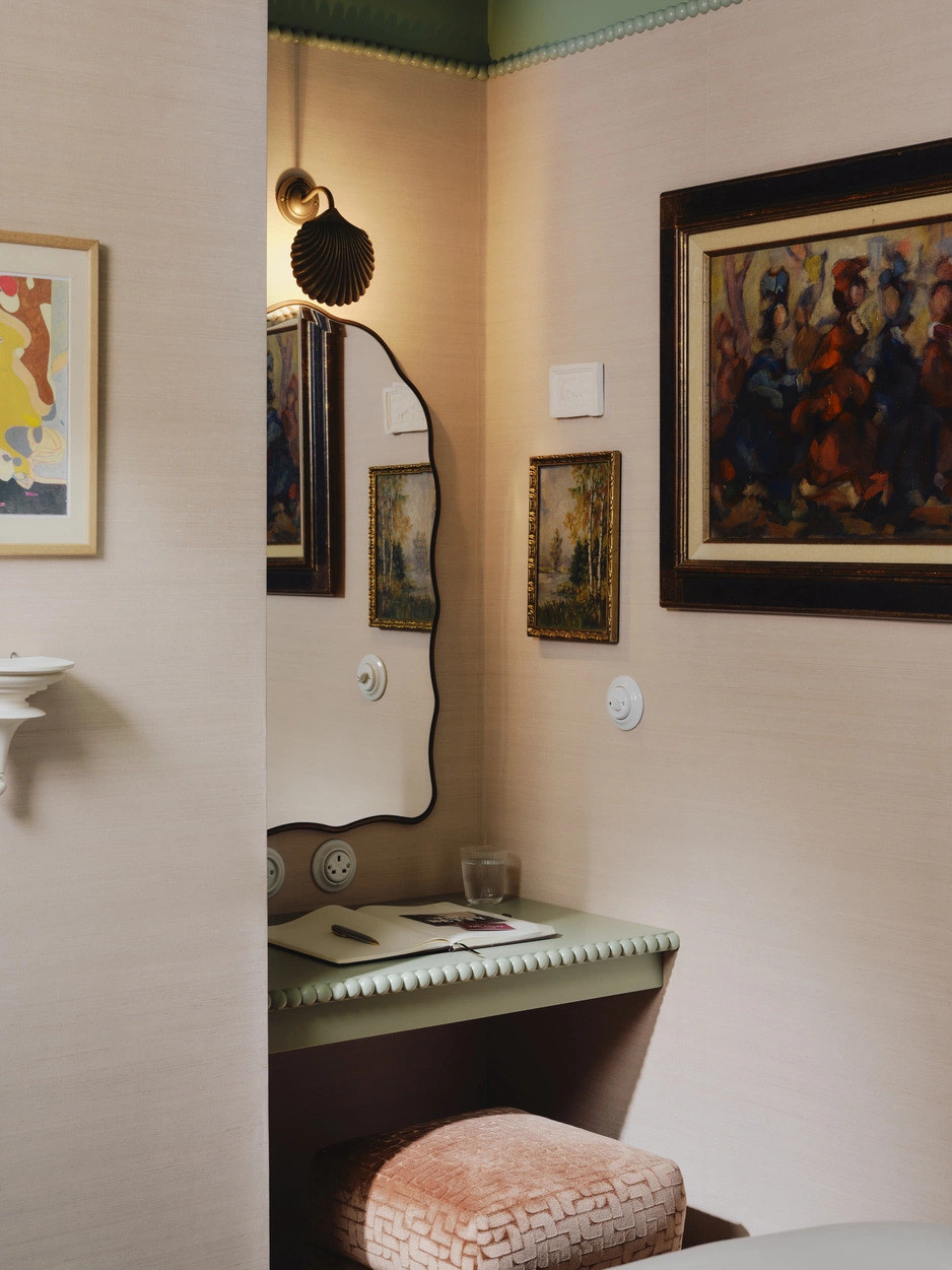 Mỗi căn phòng đều được trang trí bằng tông màu đậm, mang cảm hứng từ các bảo tàng, nhà hát của Oxford. Trần nhà được sơn bóng để ánh sáng phản chiếu, rèm cửa vòm mềm mại gợi liên tưởng đến sân khấu cổ, trong khi các chi tiết bằng đồng và đá cẩm thạch gợi cảm giác sang trọng nhưng gần gũi.